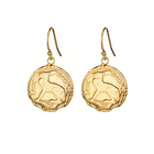 These Gold Vermeil, Irish 3 Pence Coin Earrings are a stunning and unique accessory that are sure to turn heads. The earrings feature real casting of a 3 pence coins from the Pre-Decimal Irish coin collection, which has a high-quality gold vermeil, a thick layer of 18ct gold over sterling silver. This provides both durability and a beautiful shine that will catch the light with every movement. Whether you're looking to add a touch of luxury to your everyday wear or complement a formal outfit, these Gold Vermeil 3 Pence Coin Earrings are a must-have accessory that makes for an excellent conversation starter.