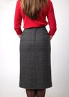 A tailored straight skirt in warm wool, fully lined. Two cut away pockets and off-set knife pleat with buttons
