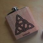 Irish Whiskey Hip Flask 6 oz. Oak Wood Clad.