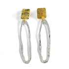Delicate yet distinctive, earrings feature a beautiful mix of textured brass and aluminium with clean, delicate lines. Their lightweight design and subtle movement bring an effortless elegance to any look. These earrings add a little bit of chic to every outfit.