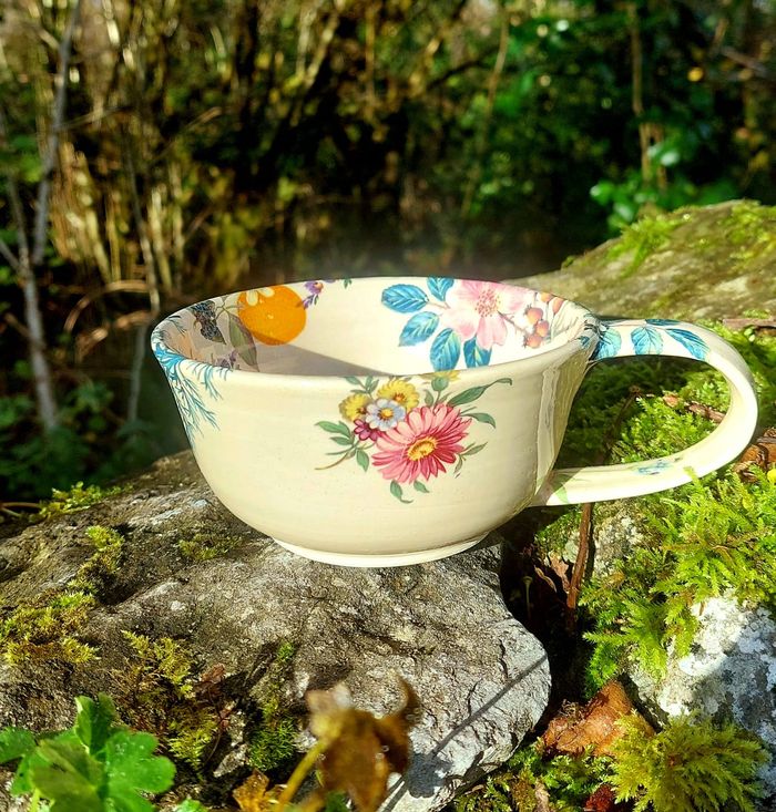 Generous handmade cup for coffee and tea or a hearty bowl of soup, designed to become part of your daily rituals. Each piece is triple fired for strength and durability, giving a high gloss finish with curated florals.