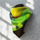 Created from my original painting Pathways, this silk scarf explores the connection between inner strength and the paths we move through in life. Flowing greens, yellows and deeper tones trace abstract lines that echo the spine as a source of support and resilience. As the scarf is folded and worn, different pathways emerge, allowing the piece to shift and reveal new expressions through movement.
